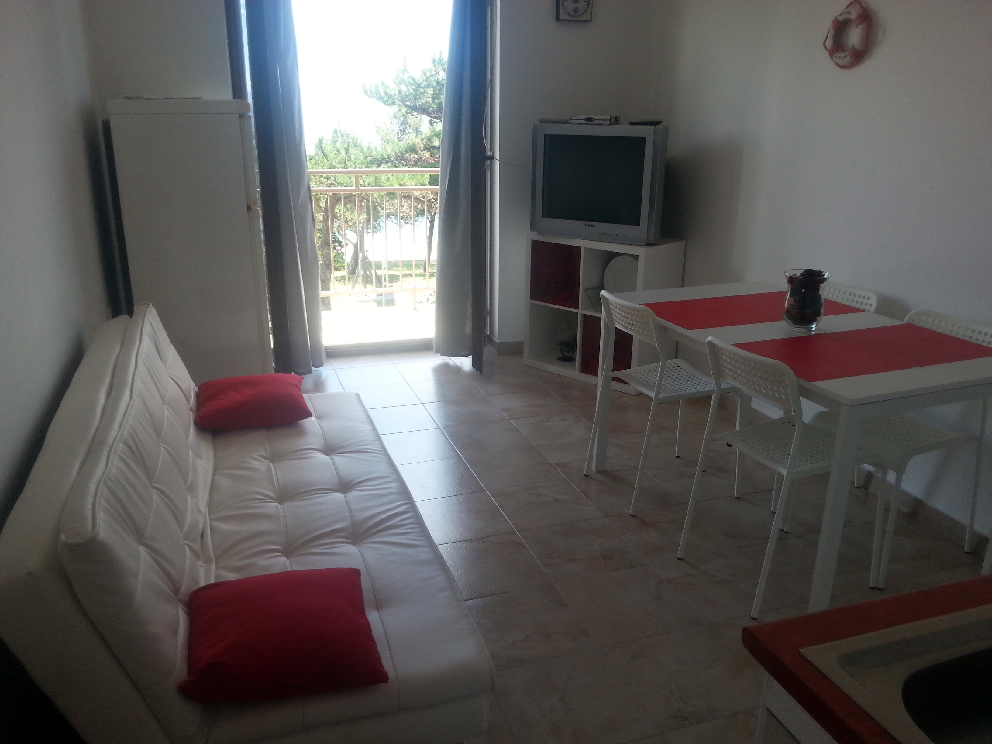 Apartman ima jednu spavaću sobu, dnevni boravak s kuhinjom, kupaonicu s WC-om i terasu s pogledom na more. U sobi se nalazi bračni krevet. U dnevnoj sobi se nalazi TV te kauč na razvlačenje na kojem može spavati dvoje djece. U kuhinji se nalazi štednjak, hladnjak, posuđe i stol. Možete koristiti roštilj koji se nalazi u dvorištu ispred apartmana. Parkirno mjesto je osigurano.